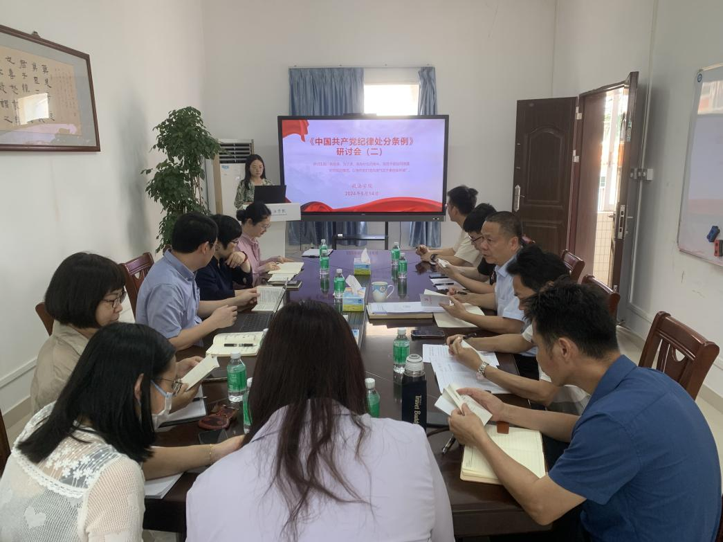 5月14日,英国威廉集团官网党委召开理论中心组扩大学习会,对新修订的《中国共产党纪律处分条例》(以下简称《条例》)进行深入学习。党委书记张滔华主持,许英院长、汪聂才副院长、党委副书记罗江鹏以及各党支部书记参加。会上,参会人员原原本本学习《条例》(第1-6章)内容,学院党委就进一步提升党纪学习教育实效提出要求,一是要全面系统学习,提升思想认识;二是筑牢思想防线,守住纪律底线;三是坚持学用结合,促进业务开展。会...