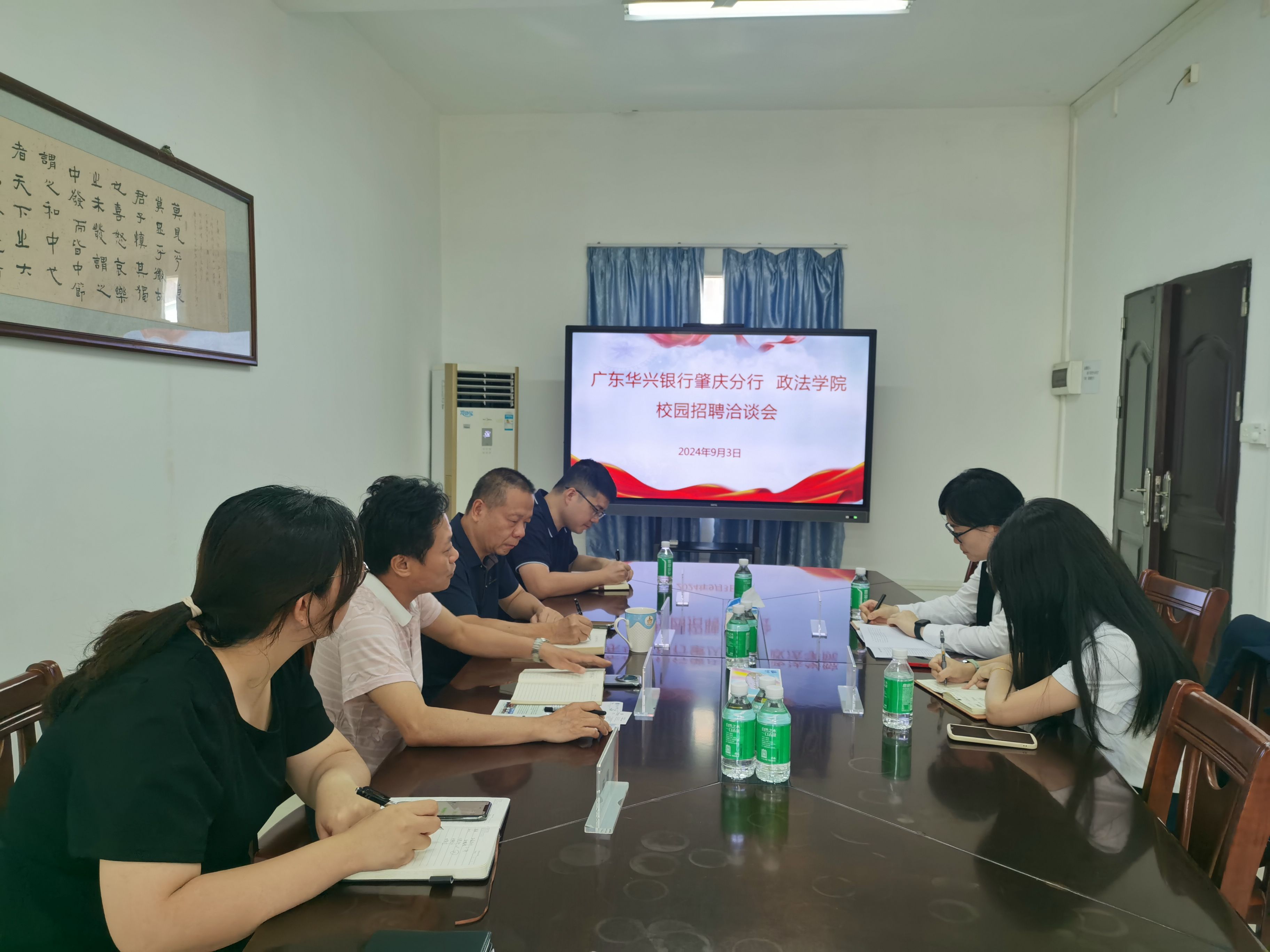为进一步做好我校2025届毕业生就业工作,开学伊始,我院全面启动2025届毕业生就业工作,明确当前我院学生就业工作的方向和目标。9月3日,广东华兴银行肇庆分行综合管理部总经理陆颖一行到访我院,洽谈校园招聘合作事宜,学院党委书记张滔华、副书记罗江鹏、公管系主任李勇、辅导员陈云、杨珊参加了座谈交流。