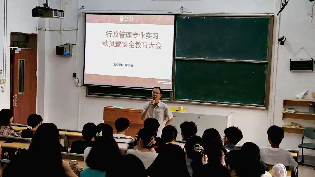 在公管系的实习动员会上,周华指出专业实习是人才培养的重要环节,同学们要利用实习的机会找准自己的人生定位,为接下来的大学生活做好生涯规划。