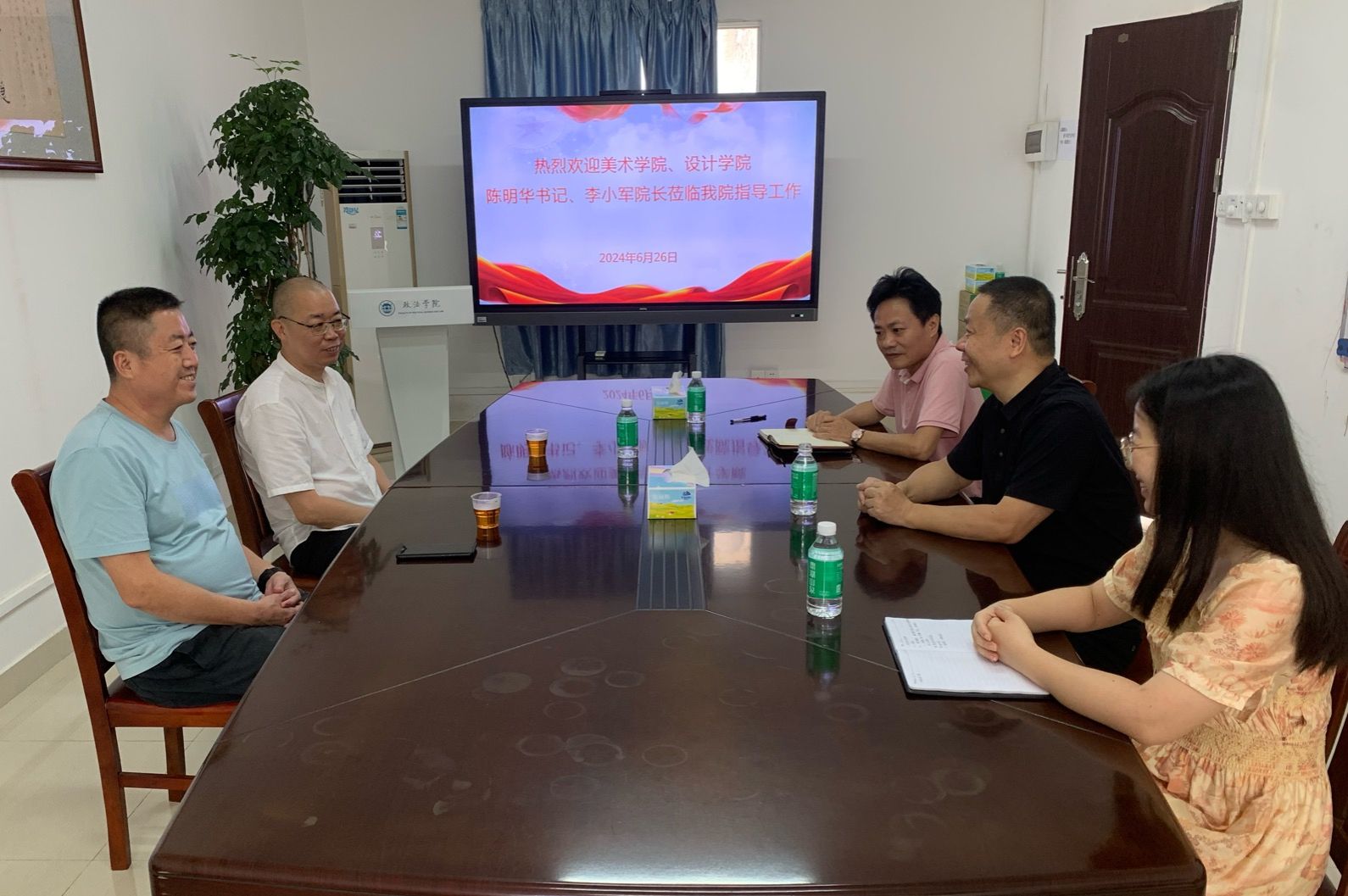 本网讯 6月26日,美术学院、设计学院党委书记陈明华、院长李小军到我院调研交流。学院党委书记张滔华、副书记罗江鹏、组织员陈云参加了此次交流座谈会。