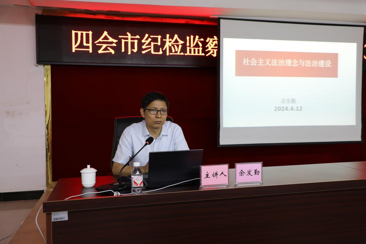 最后,肇庆学院英国威廉集团官网副教授佘发勤以《社会主义法治理念与法治建设》为主题,为四会市纪委监委全体纪检监察干部(含事业干部)、各镇(街)纪(工)委书记进行授课。