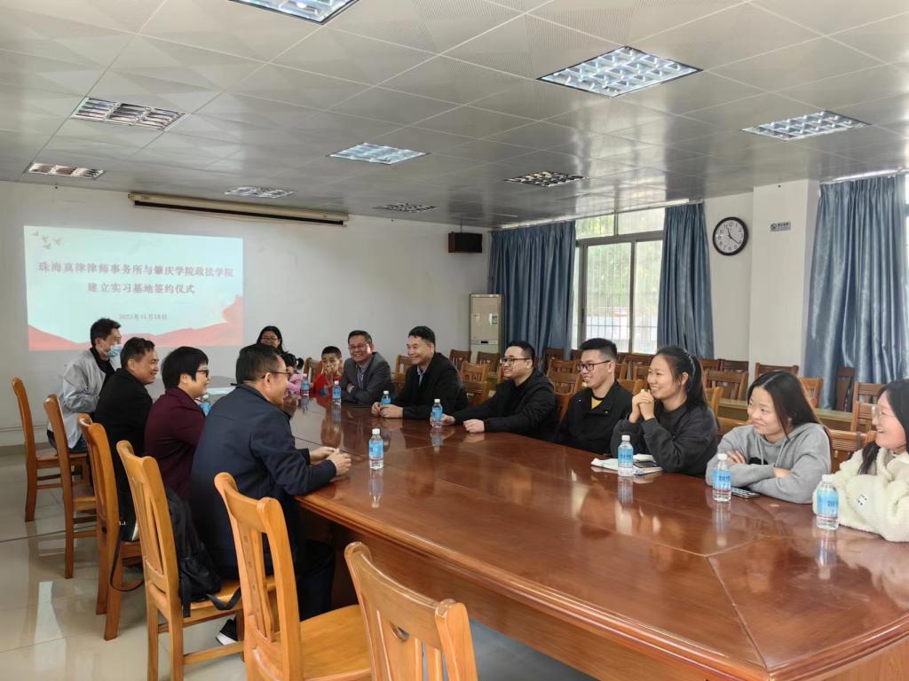 珠海真律律师事务所阮春贤律师、广东嘉骏律师事务所黄秀群律师等作为优秀校友代表进行了发言。校友们表示,受惠于母校的栽培与个人的努力,自己的事业得以发展,也期盼在未来能有更多机会回馈母校,并寄语师弟师妹扎实理论功底、积极投身实践,成为一名善良正直的政法人。会后,侯玉基和阮春贤分别代表学院和真律律师事务所,进行实习基地授牌仪式。