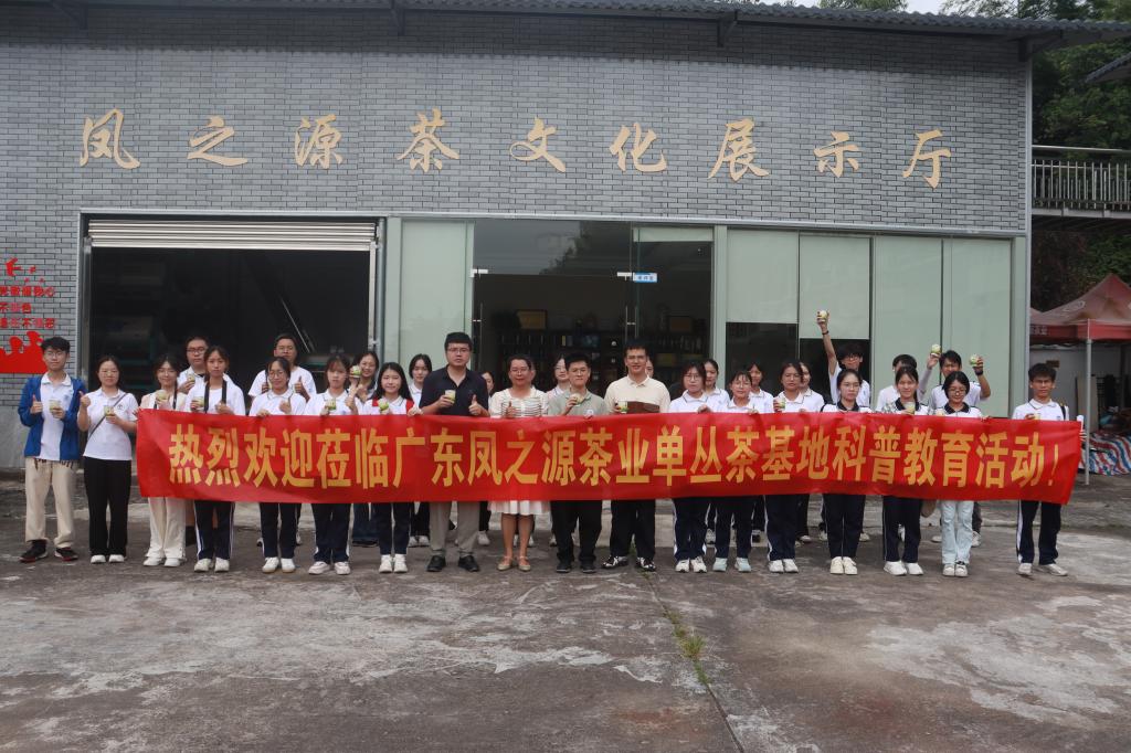 在广东凤之源单丛茶庄园,师生们在茶园负责人林燕梅的带领下,了解了茶文化的相关知识,登上茶山了解单丛茶的生长情况,进入生产车间查看茶叶的生产流程和加工设备,并在交流座谈会上进行了深入的交流和探讨,共同研究广宁单丛茶的发展壮大之路。