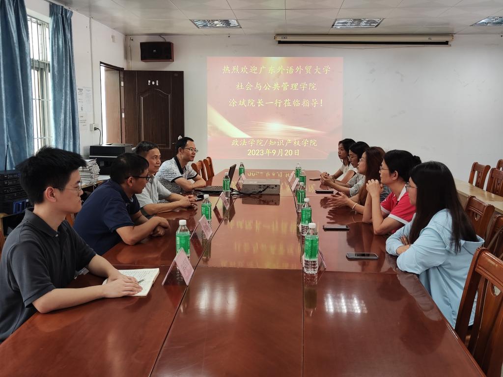 在交流座谈会上,学院党委书记侯玉基、副院长佘发勤等对广外公管学院领导老师的到访表示热烈的欢迎,双方就人才培养、学科建设、教育教学、科学研究等工作进行深入探讨和交流,表示将加强合作,互相学习借鉴专业建设经验,共同提高人才培养质量,促进学科专业高质量发展。
