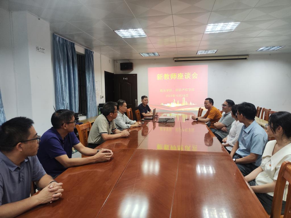 本网讯(新闻中心 陈炜琪)10月18日,学院在204会议室召开新入职教师座谈会。学院党委书记侯玉基、院长祁建平等党政领导,以及刘胜红、孟伟涛、韩荣、张呈、易海辉、石春梅等新入职教师参加座谈会。