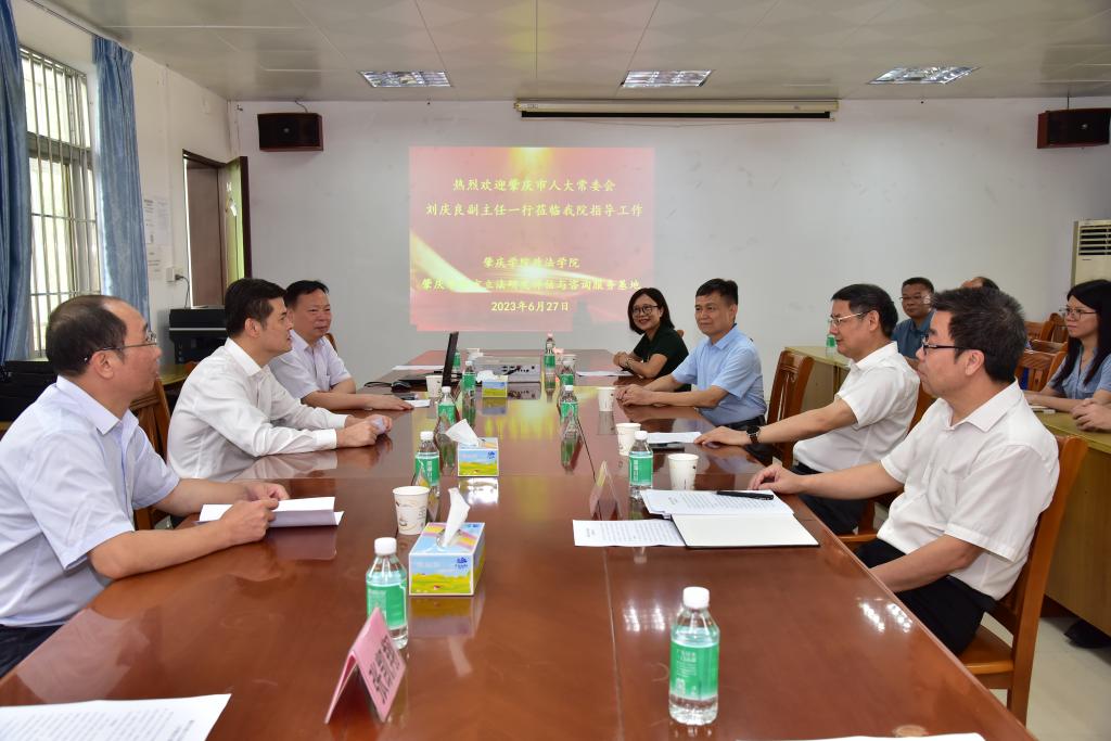 本网讯(新闻中心 陈炜琪)6月27日,肇庆市人大常委会党组副书记、副主任刘庆良一行,莅临我院调研考察、指导工作。参加此次调研的还有:市人大常委会党组成员、秘书长李家峰,市人大法制委主任委员、常委会法工委主任徐天茂,市人大常委会法工委办公室主任张凯翔,市人大机关信息中心副主任黄伯光。校长吴业春、学院党委书记侯玉基、院长祁建平等陪同调研。