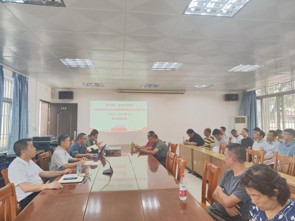 本网讯(新闻中心 陈炜琪)9月28日,我院在学院204会议室召开《普通高等学校本科教育教学审核评估实施方案(2021-2025年)》学习月动员会。学院党政领导、全体教职员工参加本次学习会。会议由学院党委书记侯玉基主持。
