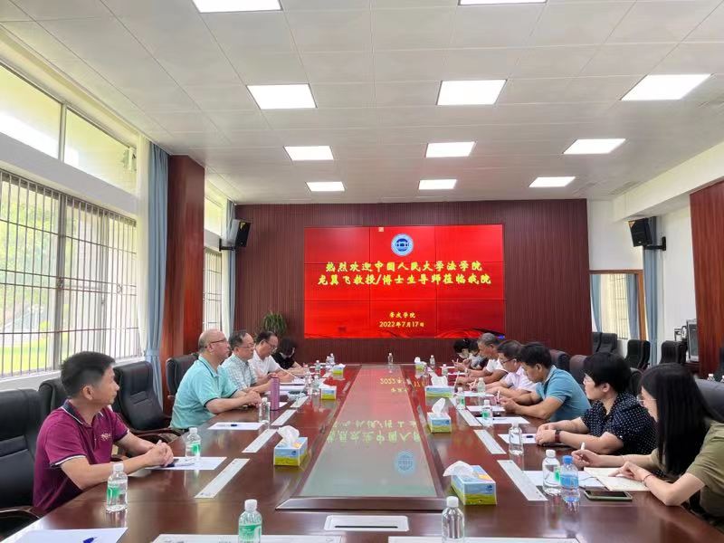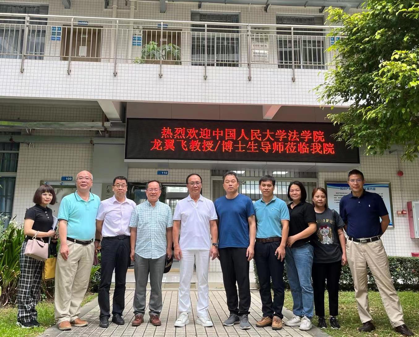 2022年7月17日上午,中国人民大学法学院龙翼飞教授/博士生导师一行专家莅临我院交流指导,我校副校长肖起清、教务处副处长梁晓颖、我院院长祁建平、副院长佘发勤和部分教师代表出席了本次交流会,会议由院长祁建平主持。