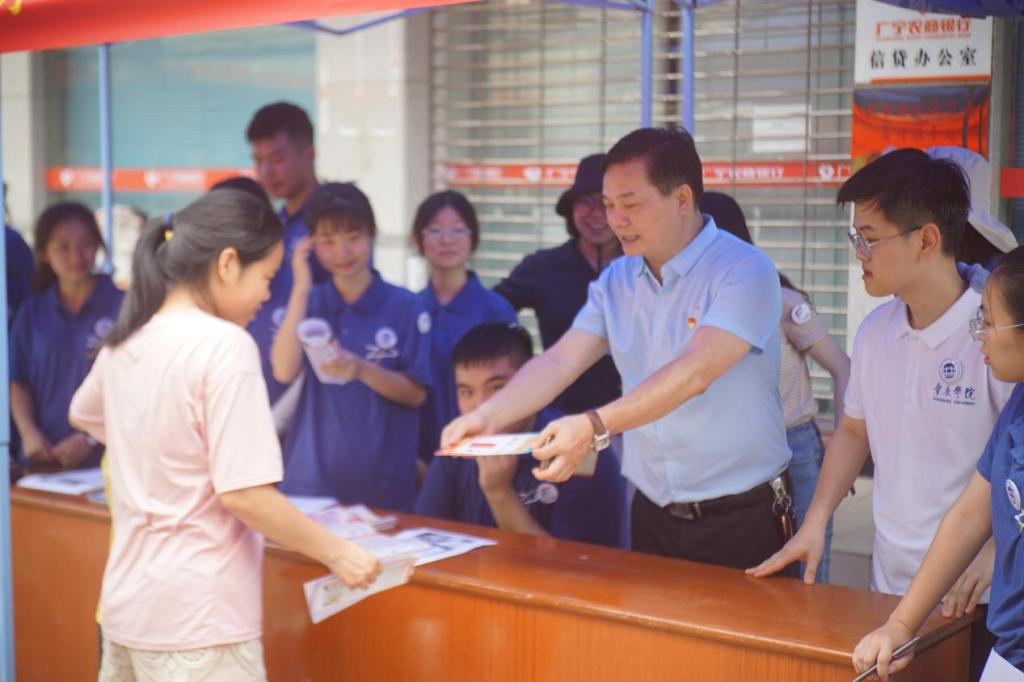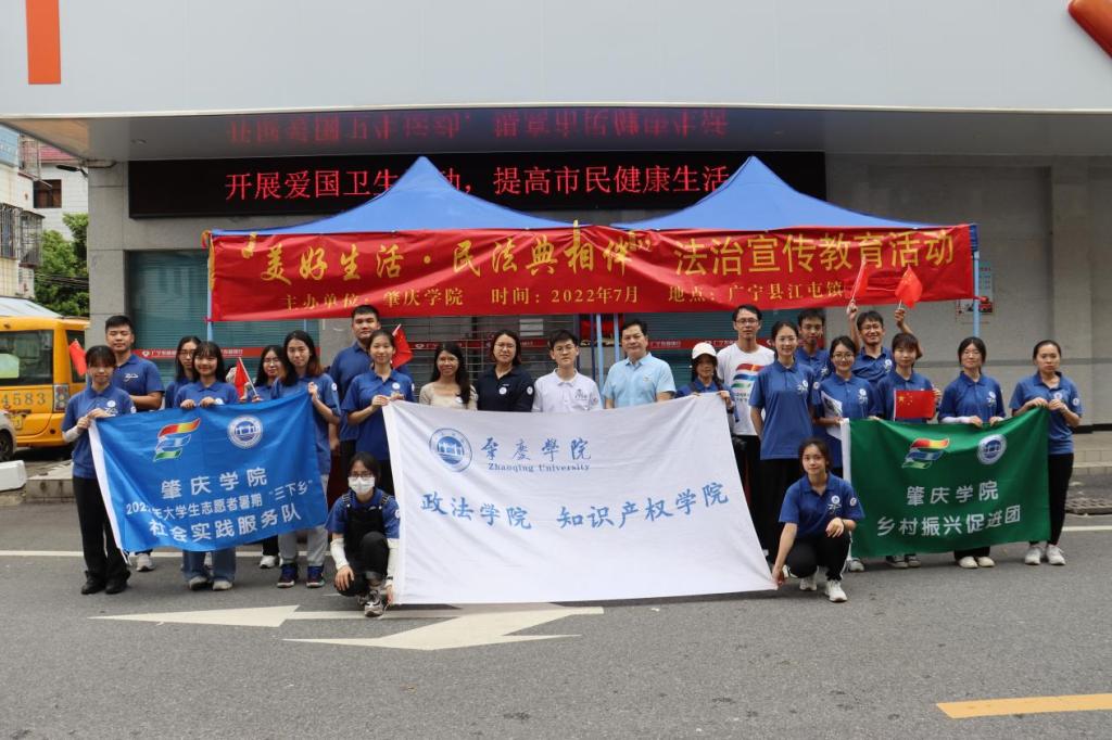 本网讯(新闻中心 陈炜琪 钟玉坚 詹诗桐 廖翊君)为深入学习宣传贯彻习近平法治思想,进一步提高全民法治素质,推进普法宣传实践活动,2022年7月9日,我院赴广宁县“三下乡”实践团在学院团委书记陈炜琪、组织员黎结梅、专任教师管馨宇、马克思主义学院教师唐心雨的带领下,在广宁县江屯镇开展了普法宣传活动。