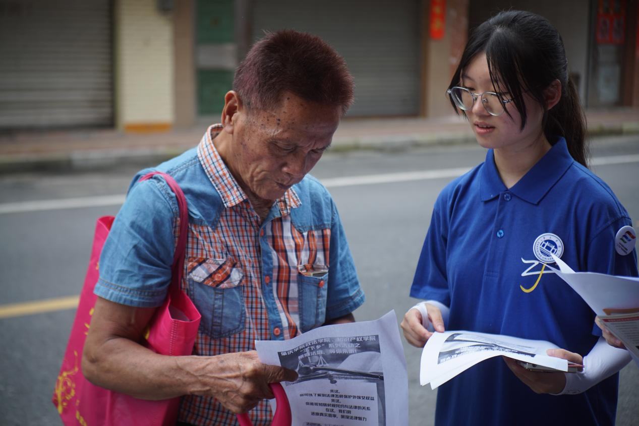 在江屯镇圩镇,实践团一行在江屯司法所所长刘五茂的指导下,开展了以“美好生活·民法典相伴”为主题的法制宣传教育活动,向乡民简要介绍了《中华人民共和国民法典》,发放了系列宣传单张,并针对乡民咨询的婚姻家庭、物权等方面的法律问题进行了现场答疑解惑。宣讲员们走街串巷,以案释法,以通俗易懂的语言讲解案例和法条,让《民法典》这部“社会生活的百科全书”真正走近乡民身边,走入群众心里。