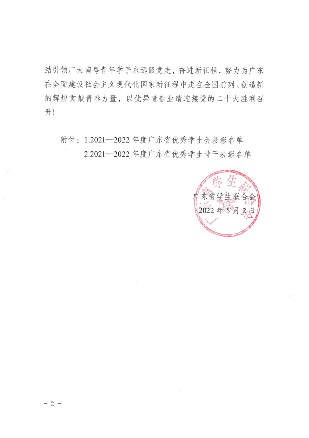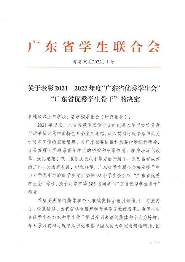 据悉,在本次表彰中,广东省学生联合会共授予92个学生会组织“广东省优秀学生会”称号,授予388名同学“广东省优秀学生骨干”称号。