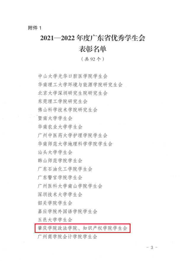 本网讯(新闻中心 陈炜琪 廖翊君)近日,广东省学生联合会公布了《关于表彰2021-2022年度“广东省优秀学生会”“广东省优秀学生骨干”的决定》,其中,我院学生会荣获2021-2022年度“广东省优秀学生会”称号。据悉,我院学生会曾于2017-2018年度荣获“广东省优秀学生会”称号,此次再获殊荣,既是对我院学生会工作的肯定,更是对未来工作的精神指导。