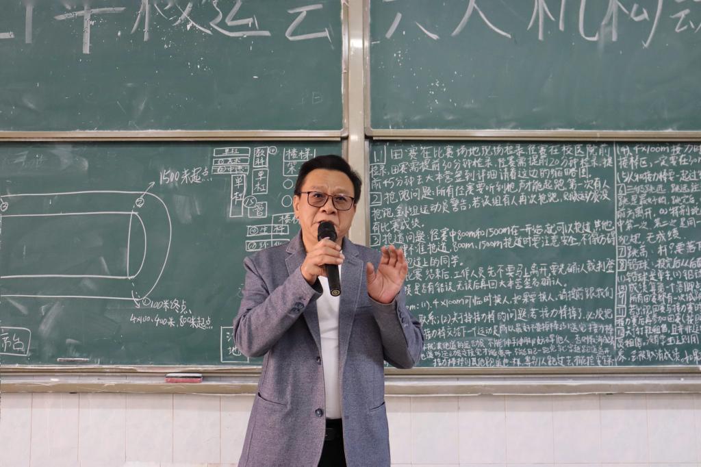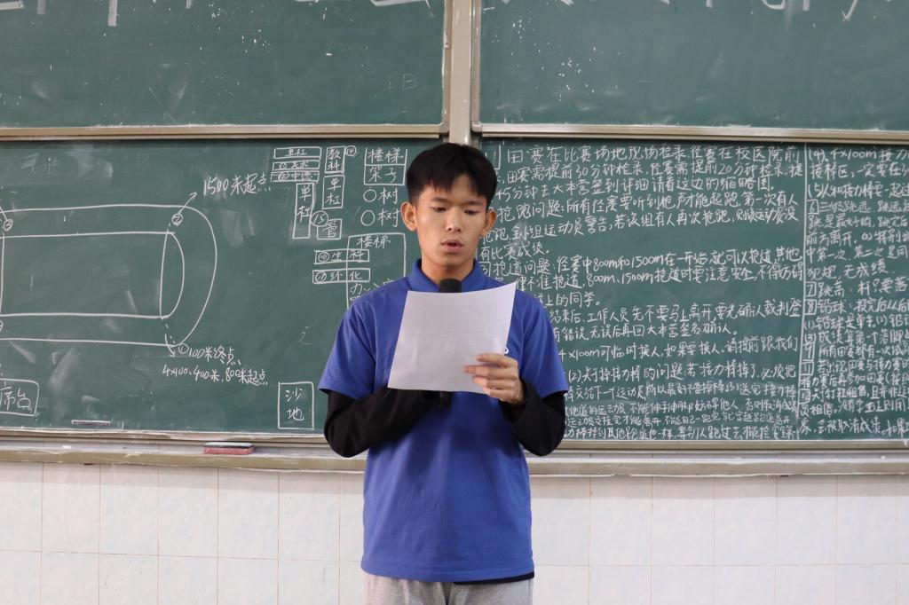 会议第一项议程为雷志科致辞,他首先回顾了近年来我院健儿在校运会中取得的优异成绩。紧接着,他在阐述校运会意义的同时,也对我院健儿的能力表示肯定并预祝他们取得佳绩。会议第二项议程为学院体育锻炼部全体成员进行自我介绍,由体育锻炼部负责人江文轩讲解校运会各项项目的规则及其注意事项。会议结尾,办公室部委习婷宣读工作人员安排并对相关内容进行补充。