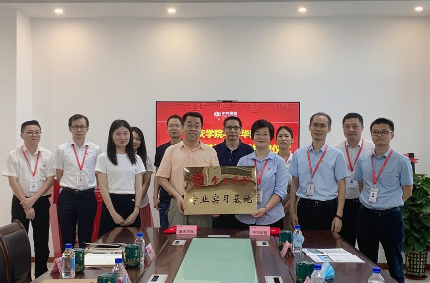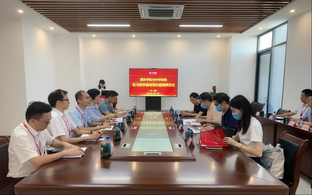 7月15日,肇庆学院英国威廉集团官网/知识产权学院与中华联合财产保险股份有限公司肇庆中心支公司在中华财保肇庆中心支公司会议室举行了现场交流暨专业实习基地签约、授牌仪式。我院院长祁建平、副院长佘发勤、公管系主任周华、法律系教师唐雪梅、中华财保肇庆中心支公司党委书记及总经理陈芳、纪委书记及副总经理廖玉贵、人事行政部经理李志强等多位公司成员参加了此次活动,陈总经理代表公司对学院一行人员的来访表示热烈欢迎。
