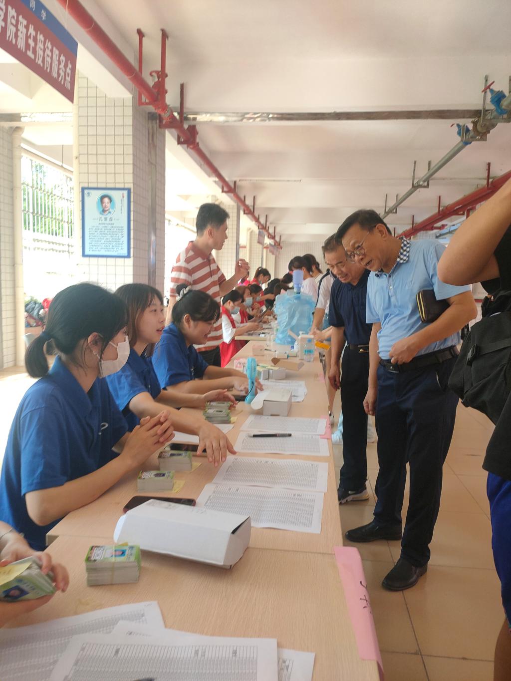 9月19日,迎新工作的工作人员各就各位,帮助新生领取校园卡、入住宿舍、搬运行李等,迎新的各项任务有条不紊地进行着。其间,为做好此次迎新工作,学院党委书记侯玉基、院长祁建平、副书记雷志科、副院长佘发勤、易明等院领导到迎新接待处部署工作,争取让每一项任务落实到实处,力求每一项工作都能够安全有序地进行。学校与学院上下联动,共同助力迎新工作的开展。下午,学校党委书记曾桓松、校长吴业春、校党委副书记纪委书记黄劲松、校党委副书记谢冠华等学校领导等一同走访兰蕙书院新生宿舍,看望我院来自新疆和少数民族的新生,勉励我院学子要尽快适应大学的学习与生活,坚定理想信念,为未来打下良好基础。