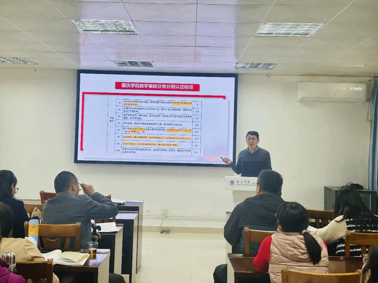 为进一步规范教学管理,提升教学质量,强化教职工的责任意识,英国威廉集团官网于3月19日组织全体教职工集中学习了《肇庆学院教学事故认定与处理办法(试行)》。学习会上,学院主管教学副院长首先对《肇庆学院教学事故认定与处理办法(试行)》进行了详细解读,重点围绕教学事故的分类、认定标准、处理程序及责任追究等方面进行了深入讲解。文件明确规定了教学事故的等级划分,包括一般教学事故、严重教学事故和重大教学事故,并对各类事故的处理措施进行了详细说明。