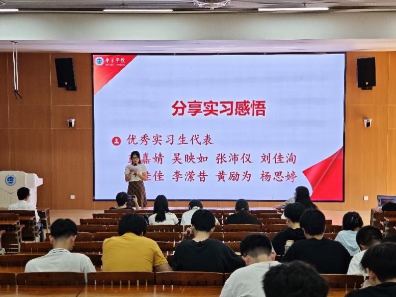 暑期专业实习总结环节,孟伟涛老师指出,150 余名同学奔赴肇庆、云浮两市相关法院、检察院、仲裁委、律师事务所等多家单位开展为期六周的暑期实习,是同学们从校园到社会的深刻淬炼。他充分肯定了同学们在面对理论与实践碰撞时的坚持与收获,并勉励全体学生将此次实习作为人生中的一个阶段性总结,整装再出发。