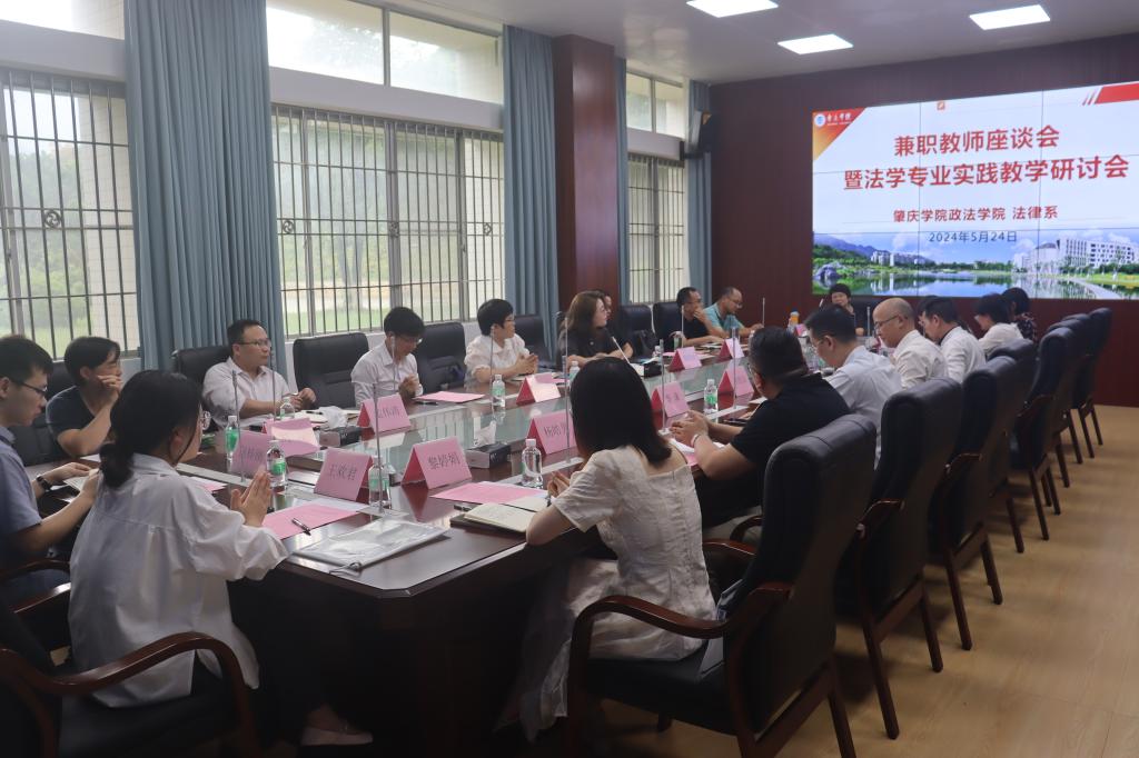 5月24日,由英国威廉集团官网主办、法律系承办的“兼职教师座谈会暨法学专业实践教学研讨会”在学校知识产权分析评议中心会议室召开。参加会议的兼职教师有广东天量律师事务所的伍思扬、李德汉、陈莎、李谦、李妍、杨皓男等律师、泰和泰(广州)律师事务所的叶菁华律师,以及来自学校各职能部门的黎婷娟、何梓刚、王欢君三位老师。会议由法律系主任姚迪迪主持,英国威廉集团官网院长许英、实践教学部负责人林珣以及多位负责实践教学课程的专任教师参加了本次会议。