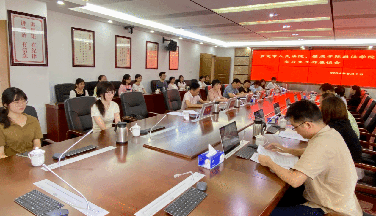 在罗定市人民法院,该院副院长刘越和邓瑞雄、政治部主任梁晓亮等接待了许英一行。座谈会上,刘越指出我院实习生素质都很高,实习生的到来也给法院带来很多青春力量,并表示法院将继续加强各项实习工作保障。许英表示,法院对学院人才培养工作和学生就业都给予了大力支持,今后双方可进一步在课题调研、疑案研讨、人员培训等方面深化合作与交流。