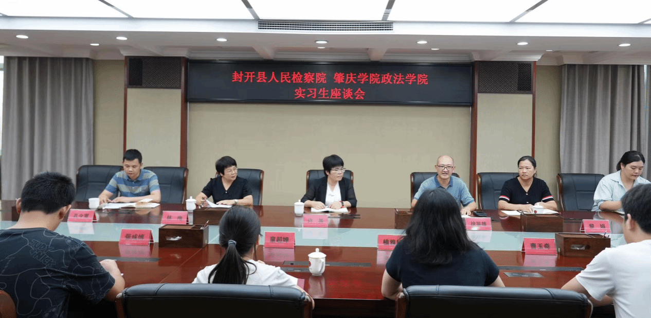 在封开县人民检察院,副检察长徐鉴雄和黎娟、政治部主任孔令宽等接待了许英一行。座谈会上,检察院介绍了实习生的工作安排和生活情况,各部门实习导师分别评价了实习生表现并分享了实习指导感受。许英表示,检察院实习导师们对实习生的悉心指导令人感动,两院未来可在检察实务课题调研、合作撰写论文等方面进一步完善实习指导工作。
