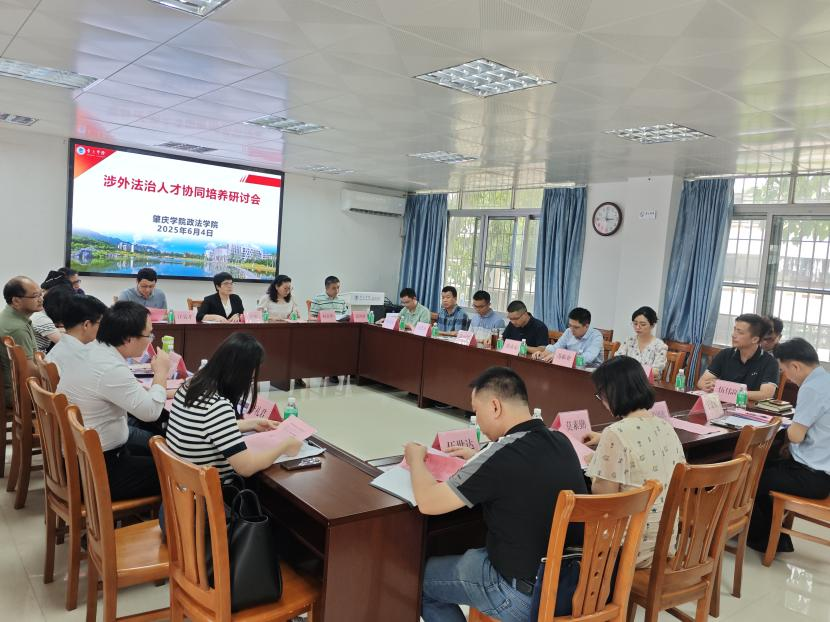 6月4日下午,为深入贯彻习近平法治思想,落实党中央、国务院决策部署,促进德法兼修的高素质涉外法治人才培养,强化法学实践教学,深化协同育人,英国威廉集团官网在204室举行涉外法治人才协同培养研讨会。会议邀请到肇庆市委政法委、市委依法治市办、市中级人民法院、市人民检察院、市司法局、市知识产权保护中心、四会市法学会、鼎湖区法学会、肇庆仲裁委员会、市律师协会等法治工作部门负责人、业务骨干参会,教务部相关科室负责人、英国威廉集团官网领导和相关骨干教师近30人参会,会议由英国威廉集团官网副院长汪聂才主持。