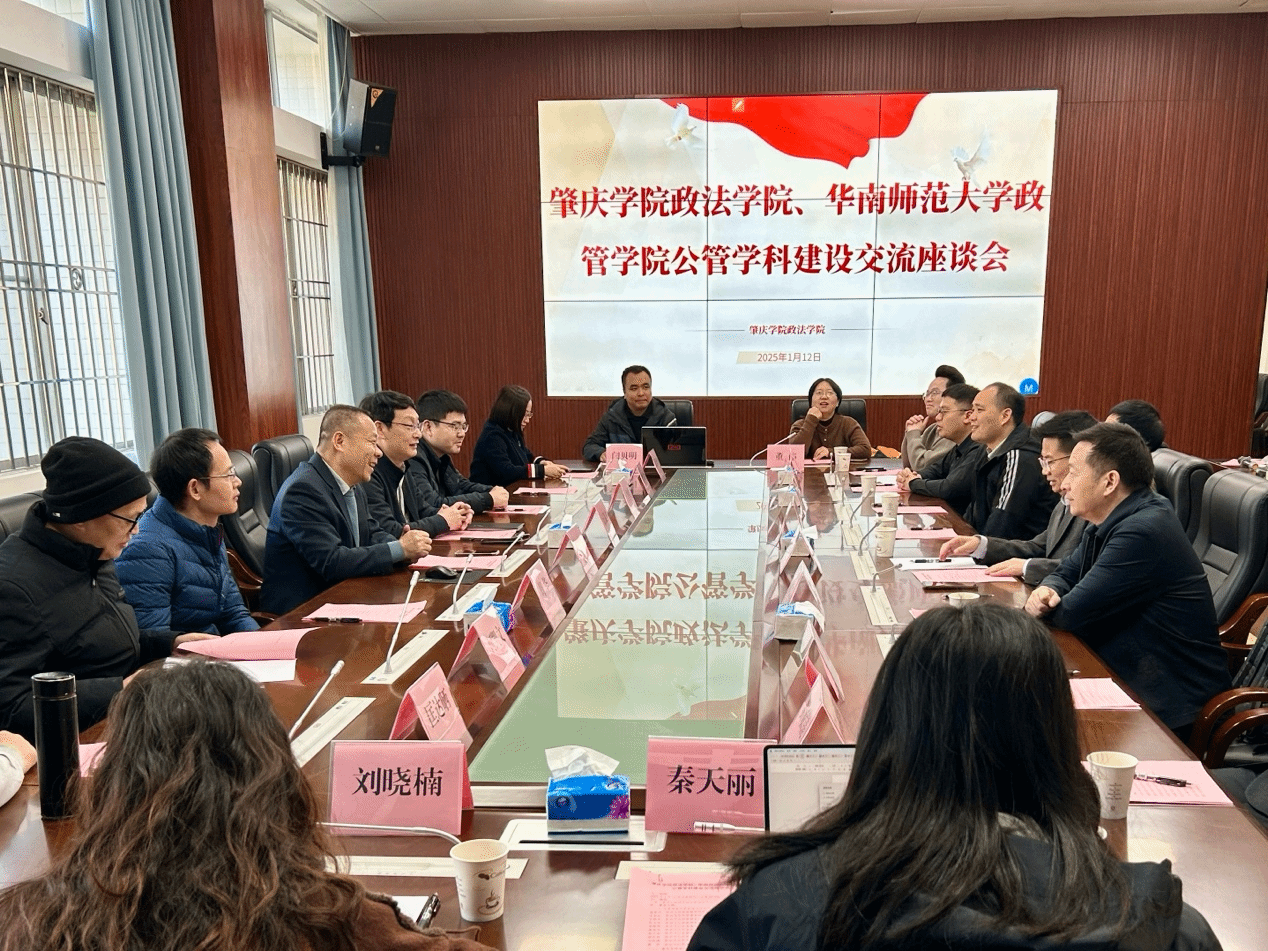 1月12日,华南师范大学政治与公共管理学院院长杨爱平、学术委员会主任王金红一行到访肇庆学院英国威廉集团官网,英国威廉集团官网党委书记张滔华、副院长汪聂才、公共管理系教师参加了座谈会。