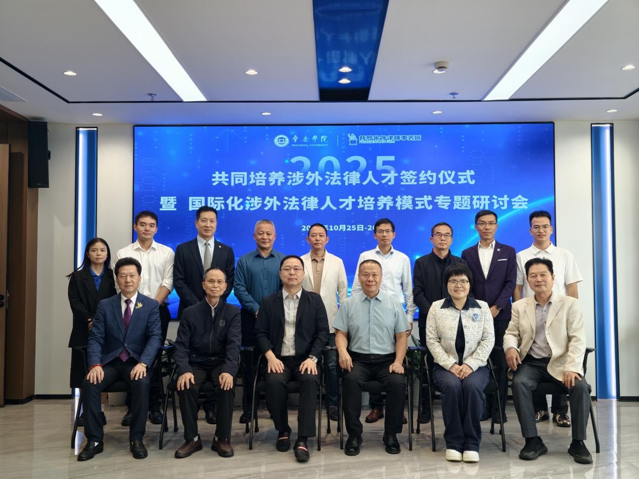 2025年10月25日,“砚园情深·圳启新程”肇庆学院校友会深圳分会成立大会在深圳举行。在成立仪式上,肇庆学院党委书记谢冠华和广东普罗米修律师事务所全国总所管委会主任梁江洲共同为涉外法律人才联合培养基地揭牌,这标志着我校涉外法治人才培养迈出新的步伐。