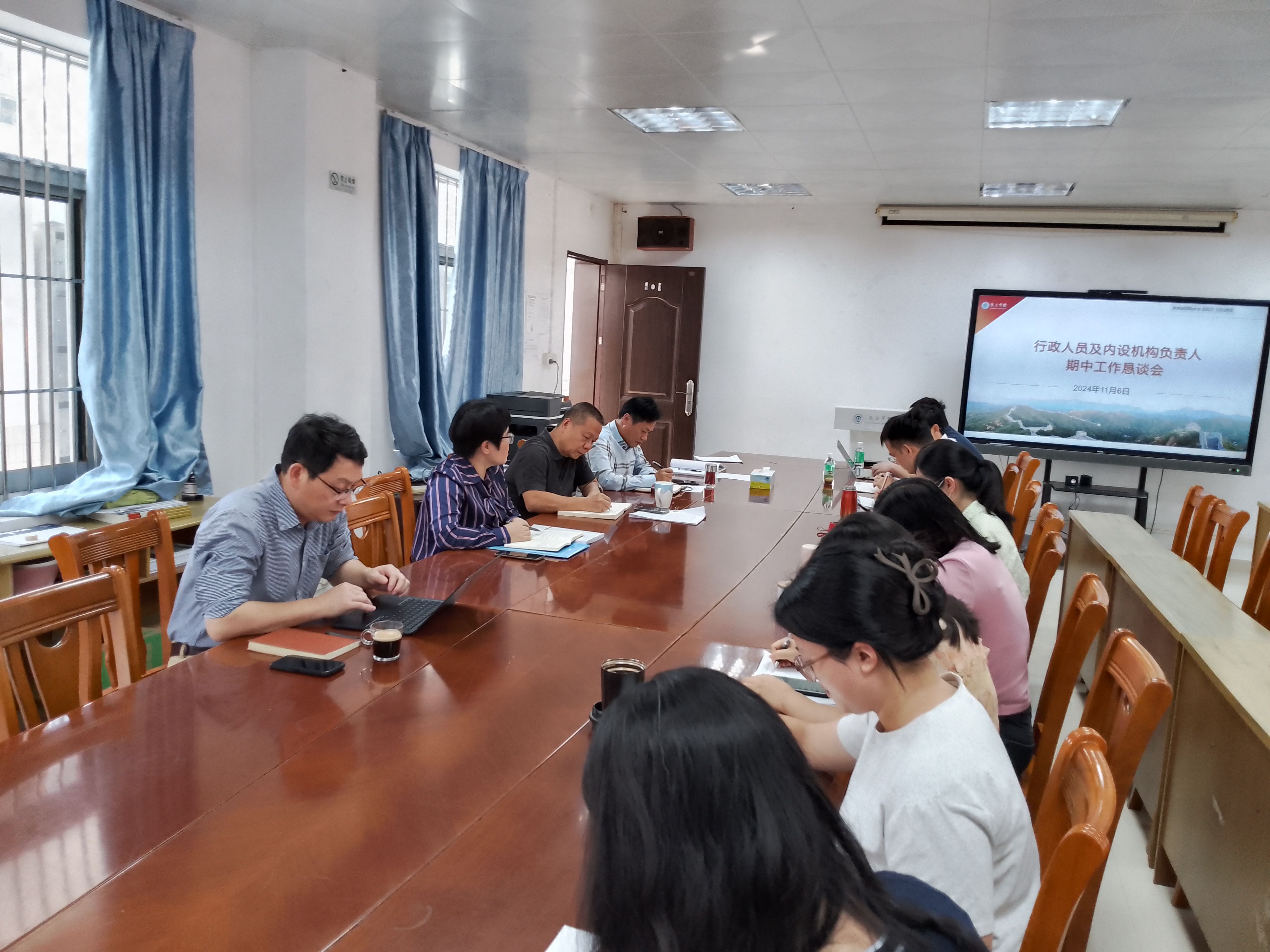 院长许英对全体行政人员及内设机构负责人在过去一段时间里的辛勤付出表示了衷心的感谢,她指出,通过此次恳谈会,大家要直面问题、交流经验、统一思想,共同推动学院各项工作再上新台阶。许英强调,此次恳谈会不仅是一次工作总结会,更是一次思想碰撞会。大家要以此次恳谈会为契机,进一步加强内部管理,提升工作效率,确保各项重点工作任务能够高质量完成。此外,许英还对申报硕士点、教务教学、宣传工作、学院文化建设、完善规章制度等下一阶段工作进行了部署。
