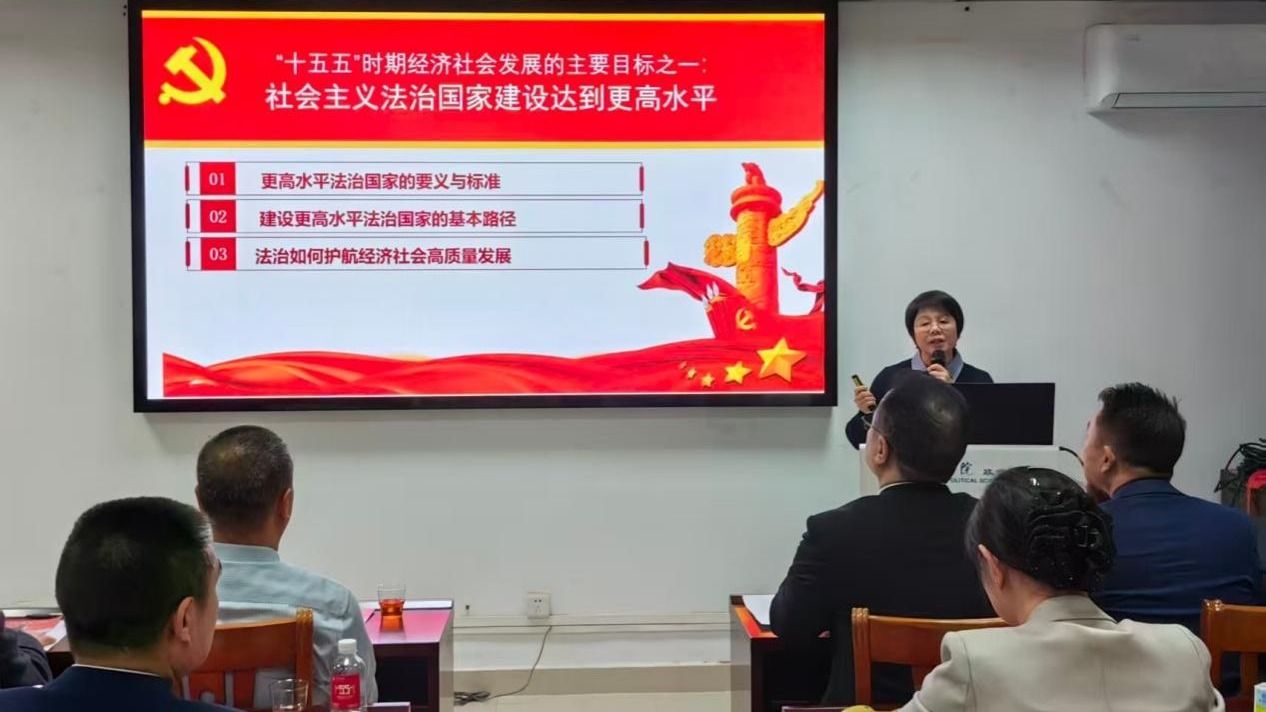 辅导报告中,林珣副教授以“深学笃行党的二十届四中全会精神,全面推进依法治国”为核心主题,紧扣“建设更高水平法治国家”时代命题,从八个关键维度系统阐释其核心要义和实践指引。林珣副教授立足党的二十届四中全会精神实质,紧密结合新时代法治建设实际与理论前沿,通过案例与学理相贯通的方式,层层递进解读全会精神,并总结提出建设更高水平法治国家的路径举措与实施要求,立意深远、内容扎实,兼具理论高度、思想深度与实践指导性,为现场参会人员准确把握全会精神、融入法治实践工作提供了有力指导。