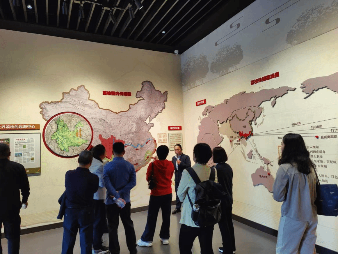 第三站,法律系教师抵达中国荔枝博览馆,重温习近平总书记茂名之行的珍贵影像。在讲解员的引导下,我们通过参观以荔史、荔事、荔知荔人、荔业、荔韵、荔梦七个篇章为主题的展览,深入了解荔枝的历史文化和荔枝产业的发展历程。