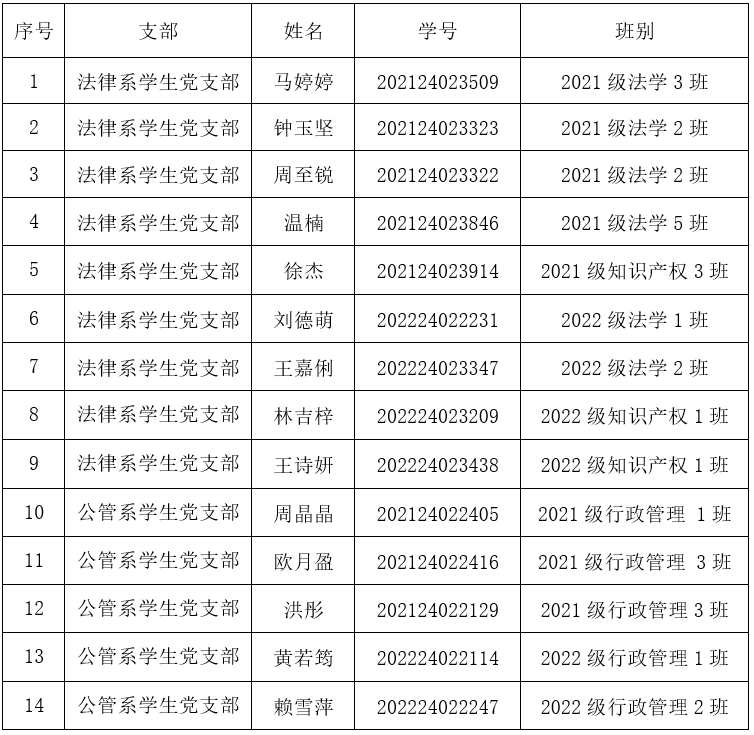 根据发展对象培养审查情况,经各支部委员会集体讨论,确定马婷婷等14名同志为2024年上半年拟接收预备党员,并报学院党委备案,现将具体名单公示如下: