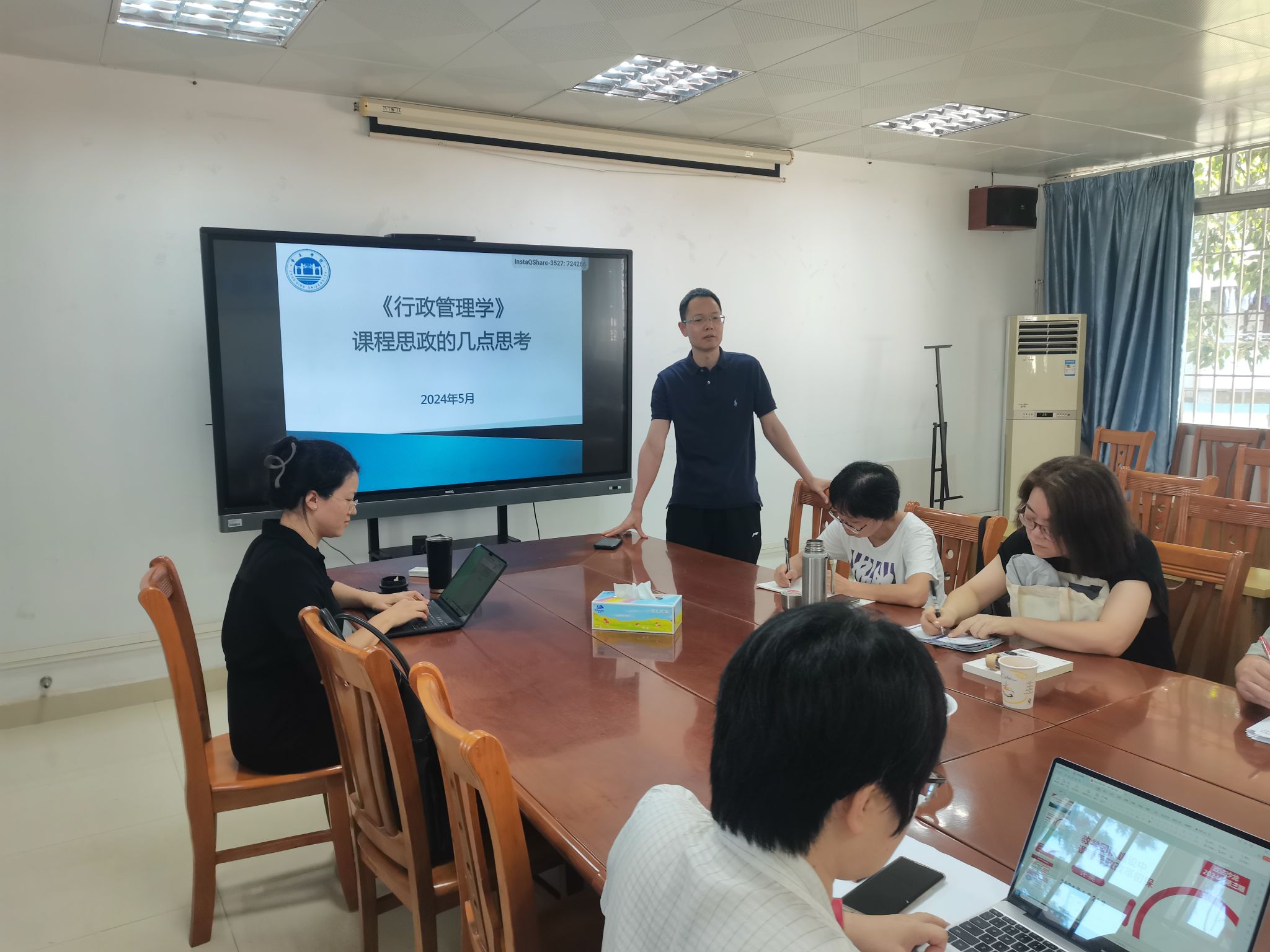 省级课程思政示范课堂主持人周华老师分享了其对课程思政的认识以及《行政管理学》课程思政的具体设计。周老师认为,假如思政课程是长江,那课程思政就好像是长江的一条条支流,主辅互汇,源远流长。《行政管理学》课程思政的具体设计可以体现为三个方面:一是以中华优秀传统文化中的治国理政的理念和思想作为融入点;二是以经典历史故事作为融入点帮助大学生提升个人修养;三是将学生关注的重大社会热点问题融入课程思政。