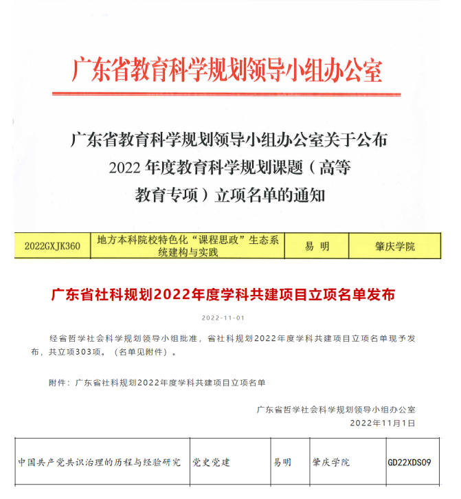 近日,从广东省教育科学规划领导小组办公室和广东省哲学社会科学规划领导小组办公室传来消息,我院易明老师申报的两项项目获得立项。