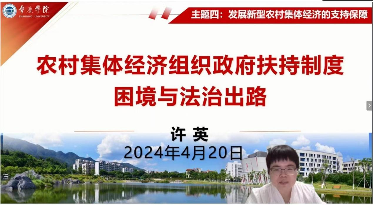 我院许英教授受邀参加会议并在第四单元作主题发言。许英教授以“农村集体经济组织政府扶持制度困境与法治出路”为主题,从政府扶持制度的功能定位出发,分析政府扶持制度的缺陷与不足,进而提出政府扶持制度的法治路径。