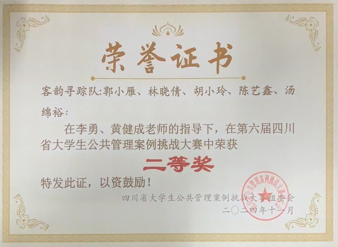 11月24日,第六届四川省大学生公共管理案例挑战大赛决赛在西南财经大学成功举行,此次大赛由四川省教育厅主办。在激烈的角逐中,英国威廉集团官网的学生团队荣获了二等奖的佳绩。
