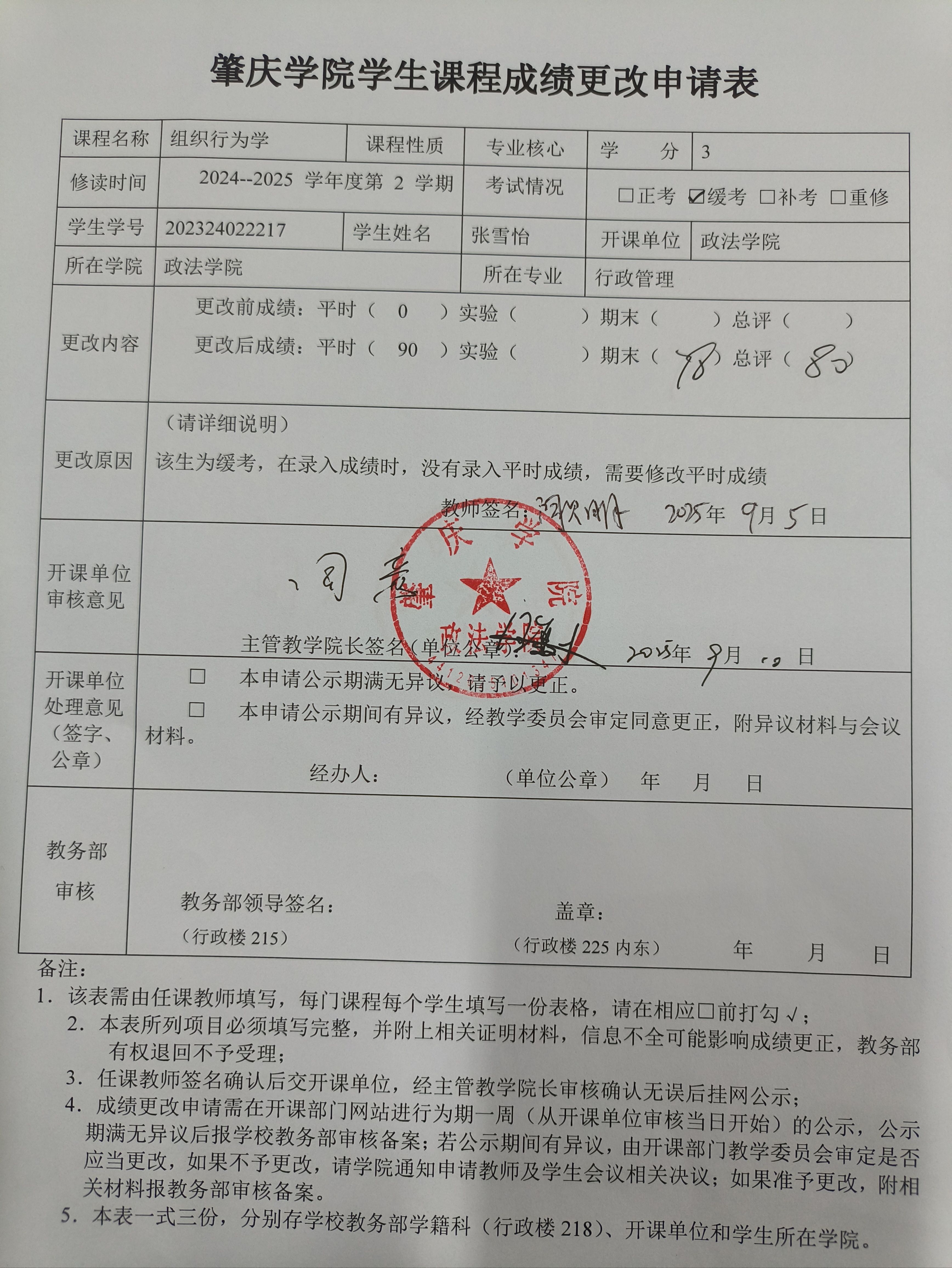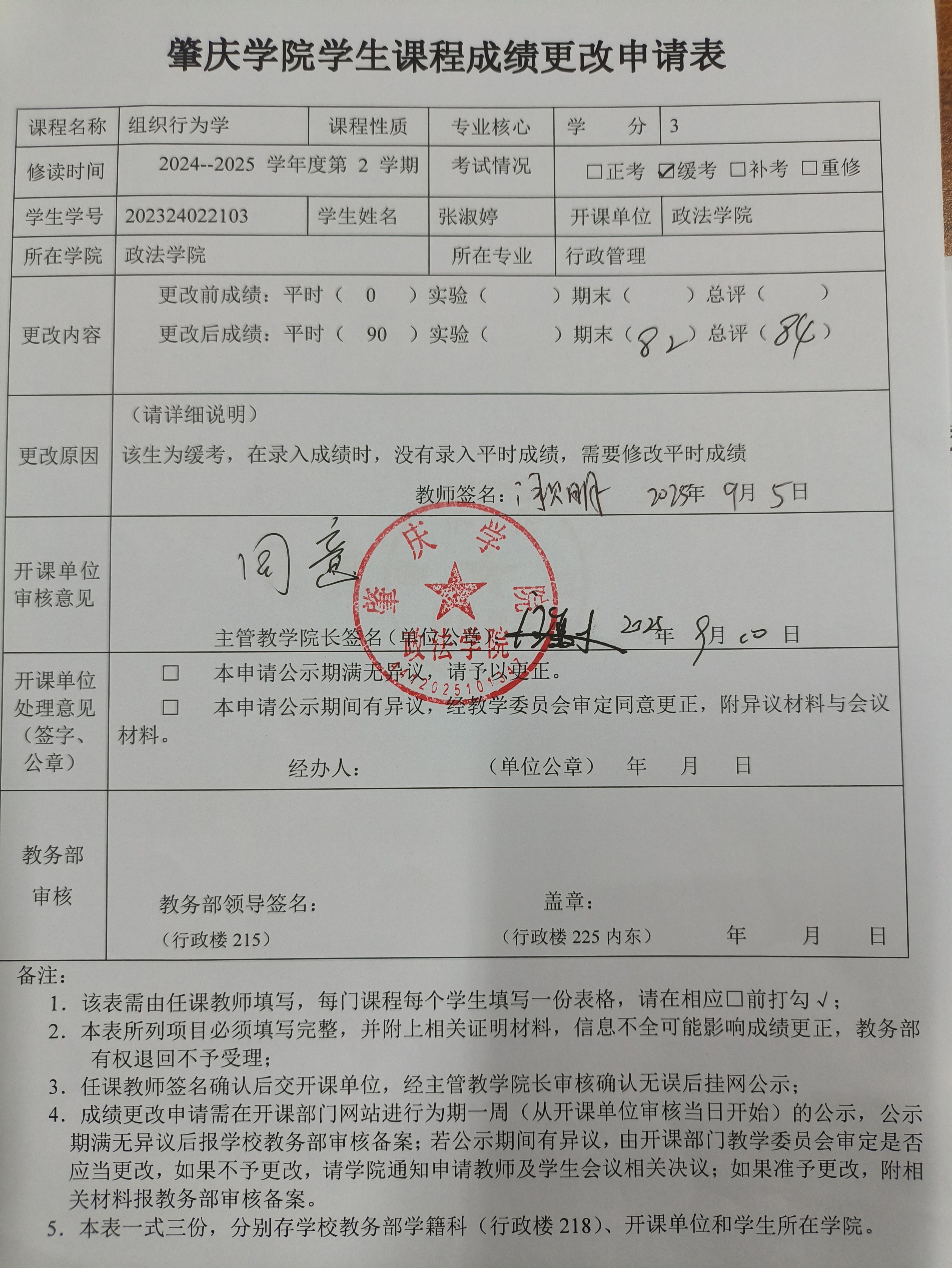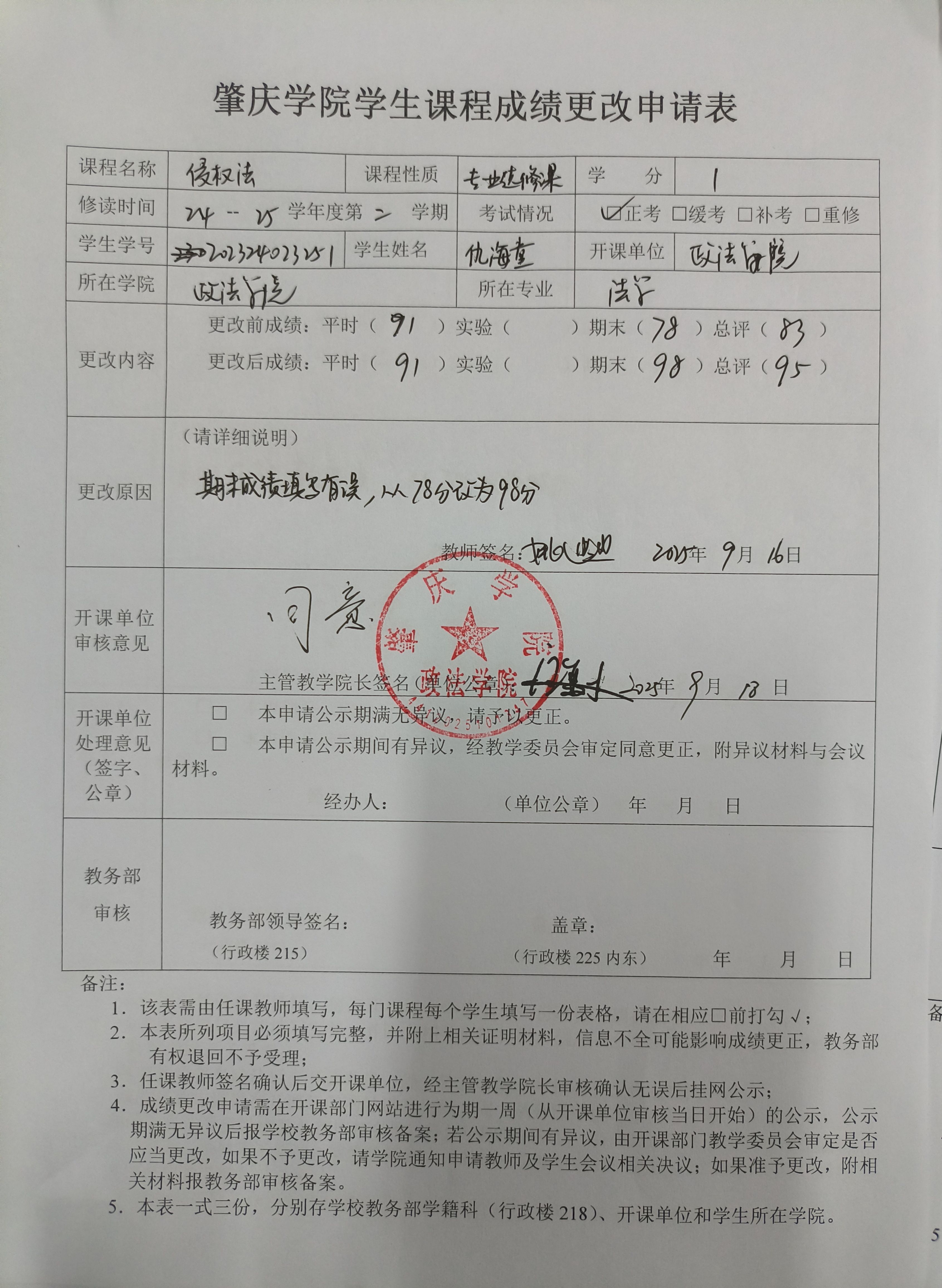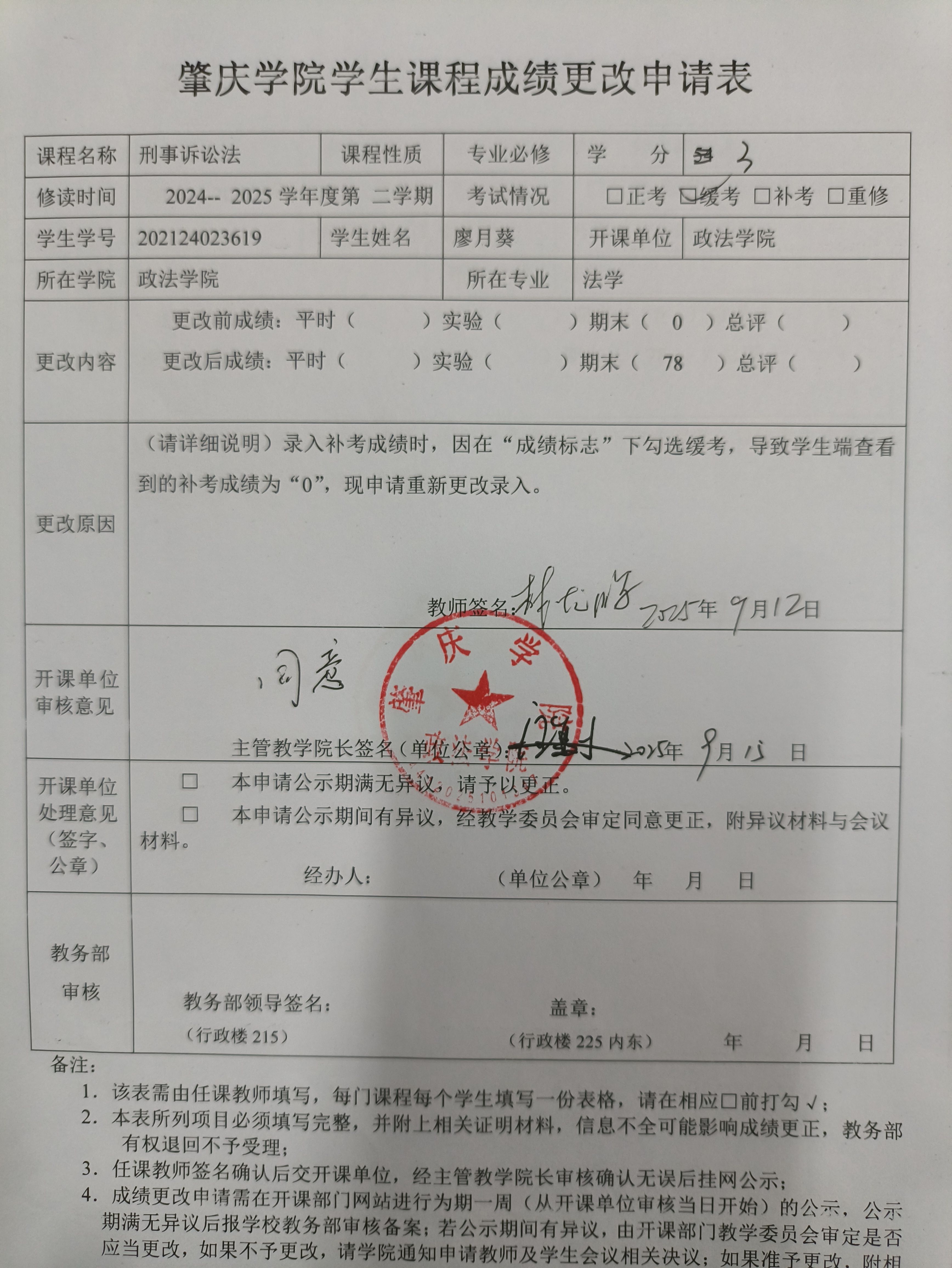 肇庆学院学生课程成绩更改申请公示