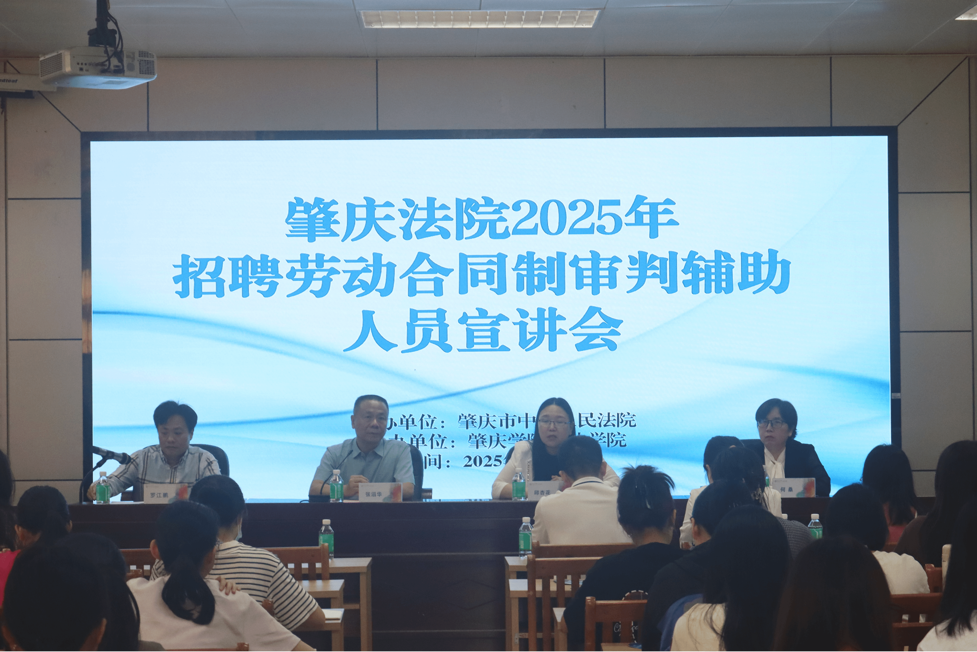 宣讲环节通过播放肇庆法院宣传片,生动展示了法院工作环境与司法实践成果。市法院工作人员系统解读了审判辅助人员的招聘政策、薪酬待遇及职业保障;端州、高要、四会、怀集等基层法院代表则结合区域特色,重点讲解了岗位差异化政策,为学生提供多元化选择。