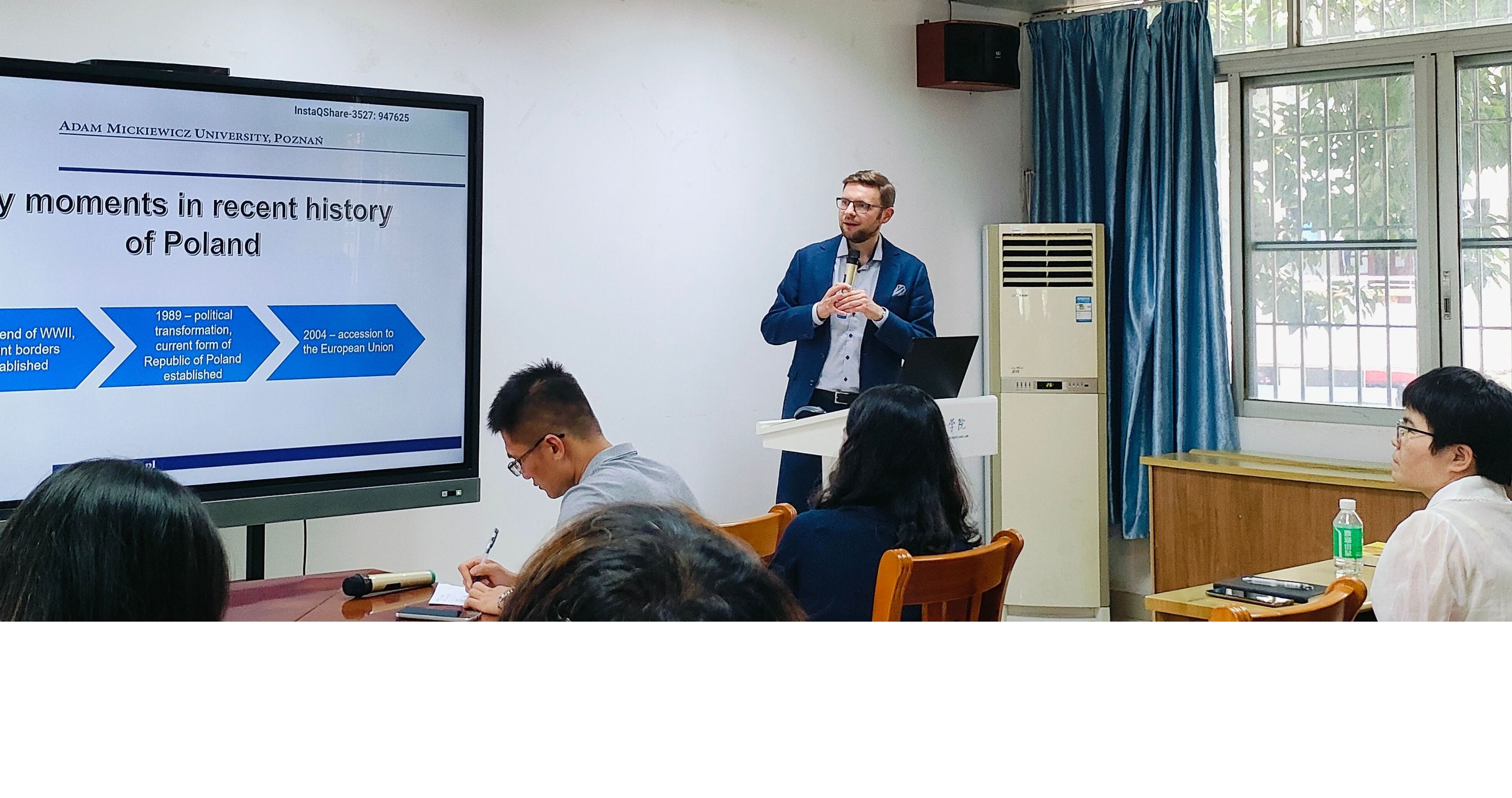 9月27日下午,英国威廉集团官网特邀波兰密兹凯维奇大学政治与新闻学院战略研究系助理教授Rafał Wiśniewski博士作题为《当代波兰:政治、欧洲关系与外交政策》的专场英文学术报告,深受政法师生好评。党委书记张滔华、院长许英、相关系部主任、专任教师等师生参加讲座。Wiśniewski博士以波兰的历史转折点、立法与行政框架、司法体系及外交策略等各方面介绍了波兰的基本情况。通过分析贸易进出口等数据,阐述了欧盟在波兰发展中的作用以及波兰与中国的外交关系。...
