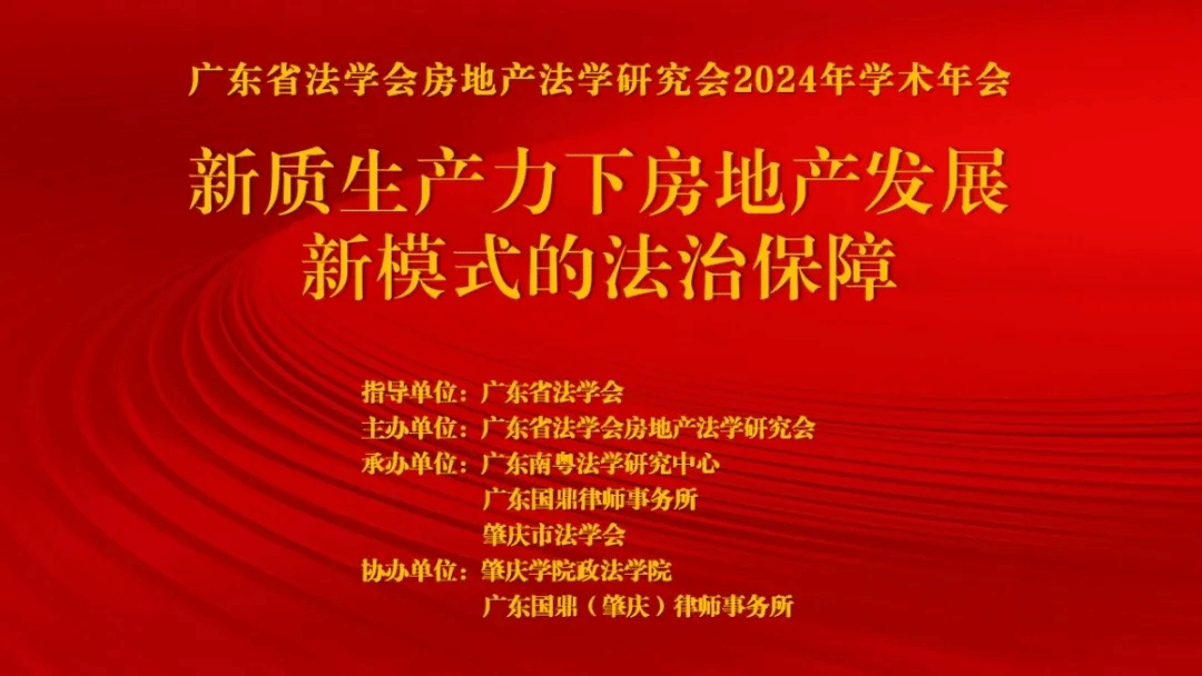 2024年11月27日,房地产理论与法律实践研讨会暨广东省法学会房地产法学研究会2024年学术年会在广东国鼎律师事务所成功召开。本次学术年会在省法学会指导下,由广东省法学会房地产法学研究会主办,广东南粤法学研究中心、广东国鼎律师事务所、肇庆市法学会承办,肇庆学院英国威廉集团官网、广东国鼎(肇庆)律师事务所协办。来自省内的相关实务部门及高校参会代表70余名,围绕“新质生产力下房地产发展新模式的法治保障”主题展开广泛而深入的探讨。...