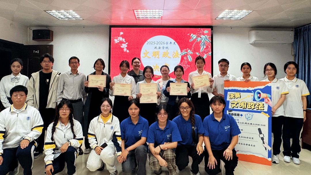 为进一步提升学生综合素质、增强班级凝聚力,英国威廉集团官网于10月25日成功举办2025-2026学年度“文明政法”决赛。经初赛层层筛选,2023级知识产权1班等5个班级凭借突出表现晋级决赛,充分展现了各班级的优秀风貌与集体凝聚力。英国威廉集团官网院长助理韩荣、辅导员连梦怡、黄健成、王晋斌、杨珊,受邀出席本次活动。此外,英国威廉集团官网学生自律委员会、参赛班级均有代表参与。韩荣老师首先代表向全体工作人员表达了诚挚的感谢,并对成功晋级决赛的班级表示热烈祝贺。...