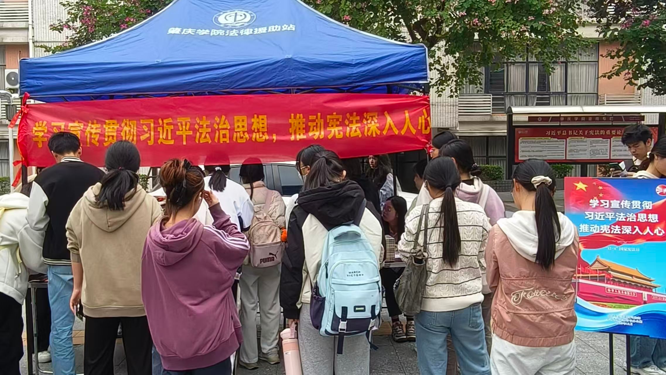 本网讯 2025年12月4日是国家宪法日。为深入学习宣传贯彻习近平法治思想,推动宪法精神深入人心,我校法律援助工作站于当日举办了以“学习宣传贯彻习近平法治思想,推动宪法深入人心”为主题的系列宣传活动。活动形式新颖,寓教于乐。现场特别设置了“宪法知识盲盒问答”与“宪法标语书签创作”两大互动摊位。在知识问答环节,师生们踊跃参与,随机抽取题目并进行解答,在趣味挑战中巩固了宪法知识,提升了法治素养。在书签创作区域,...
