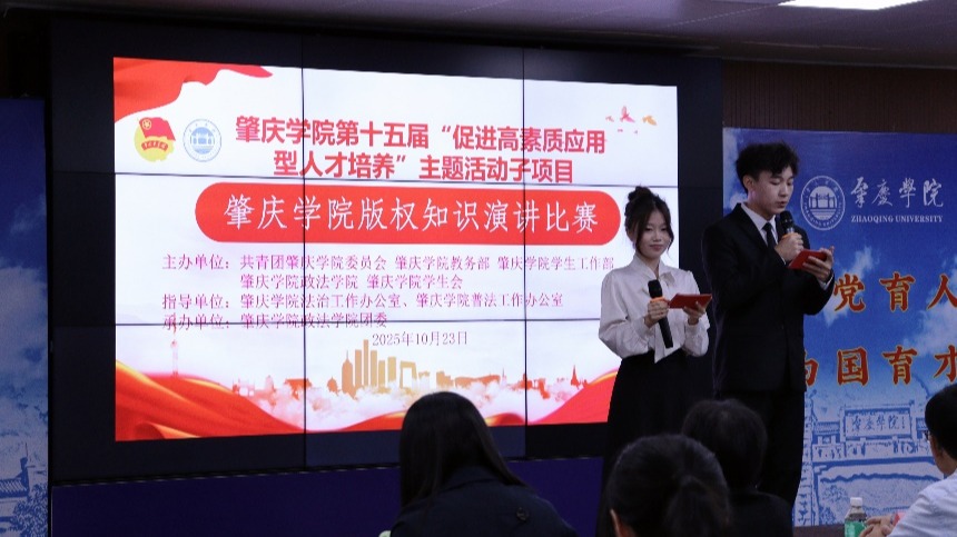 为激发青年大学生对知识产权的保护意识,强化其对时代创新的责任担当,营造崇尚创新、尊重知识产权的校园氛围,肇庆学院于10月23日在学生发展活动中心举办“促进高素质应用型人才培养”版权主题演讲比赛。出席本次大赛的嘉宾有英国威廉集团官网党委书记张滔华,端州区检察院第二检察部一级检察官李翠健副主任,英国威廉集团官网教师韩荣、刘胜红、刘芳、邝伟燕、杨珊及22级学生优秀代表王志。本次大赛由司仪队刘丽瑶、彭炫强主持。张滔华书记开幕致辞张滔华在致辞中强调,...