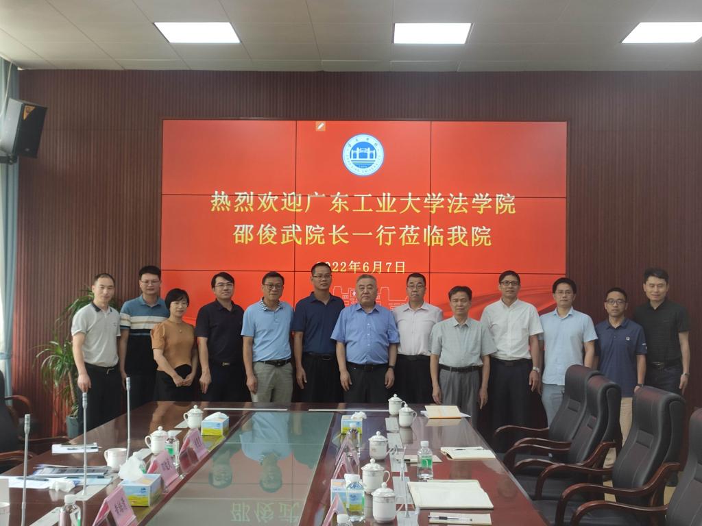 本网讯(新闻中心 李焯权)为了加强我院与广东工业大学法学院在学科建设方面的经验交流,促进两院在人才培养上更好的合作,6月7日下午,广东工业大学法学院邵俊武院长等一行莅临我院进行学习交流。参加本次交流会的有广东工业大学法学院院长邵俊武、党委书记黄培清、党委副书记黄斐斐、党政办主任张玉刚,我院党委书记侯玉基、院长祁建平、党委副书记雷志科、办公室主任王铭等。会上,我院与广东工业大学法学院充分交流双方意...