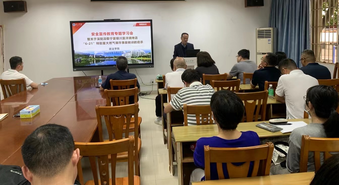 为进一步强化我院教职员工消防安全意识,落实安全措施,营造安全校园环境。3月27日,我院组织开展《安全宣传教育专题学习会暨关于深刻汲取宁夏银川富洋烧烤店“6.21”特别重大燃气爆炸事故教训的启示》专题学习,学院领导及全体教职工参加会议。会上,全体教职工通过观看“宁夏银川富洋烧烤店“6.21”特别重大燃气爆炸事故警示教育片,汲取事故教训,切实提高消防安全意识和火灾应急处置能力,将校园安全工作放在首位,预防...