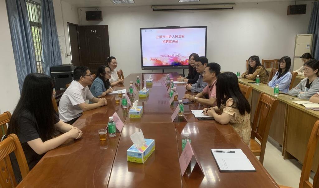 为推动毕业生高质量充分就业,5月20日,我院邀请云浮市中级人民法院来校开展专场招聘会。招聘会现场气氛热烈,云浮市中级人民法院党组成员、政治处主任陈飞,副主任李敬钟,郁南法院政治处主任傅永平一行与毕业生进行了深入交流,并针对学生们关心的各个问题进行了耐心细致的解答。与会毕业生积极踊跃报名并参加了现场组织的笔试与面试。经考核,拟招录我院共11位毕业生到岗参加工作。本场招聘会以推动学生优质就业为目的,以专...